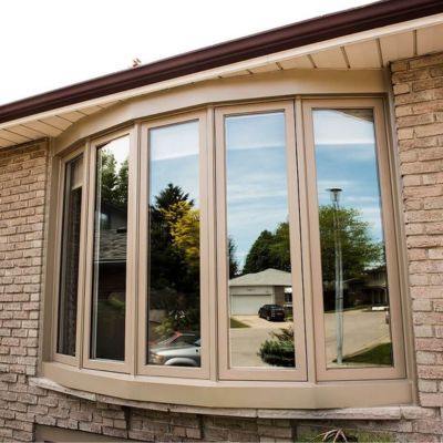 Curved window systems made of multiple panels that extend outward, adding natural light and a smooth, elegant appearance.