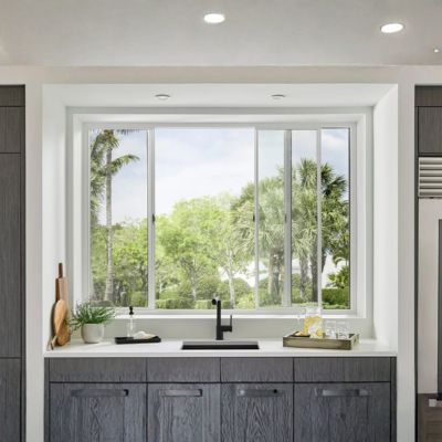Box-style windows that project outward, creating a small shelf ideal for plants, herbs, and extra sunlight—commonly installed above kitchen sinks.